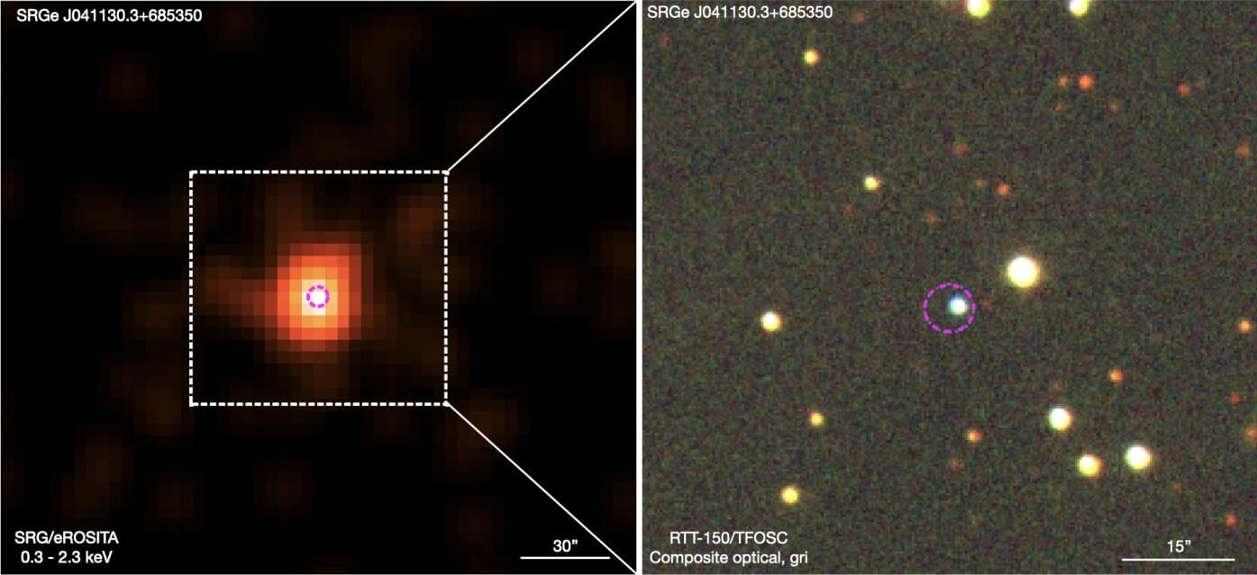 І ось міжнародна група астрономів під керівництвом Ільхама Галіулліна з Казанського федерального університету виявила і вивчила нову катаклізмічну змінну SRGeJ041130.3+685350, скорочено – SRGeJ0411. Робота опублікована в журналі Monthly Notices of the Royal Astronomical Society.