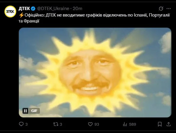 У мережі вже з’явились дотепні порівняння європейського відключення світла з українськими реаліями. Користувачі згадують про павербанки, зарядні станції та навички виживання без електрики, які тепер стали звичними для українців. У кумедній формі згадали й про європейських мігрантів з України, які повертались додому за стабільною електрикою, а також пожартували про компанію ДТЕК, яка «не вводитиме графіки» в ЄС.