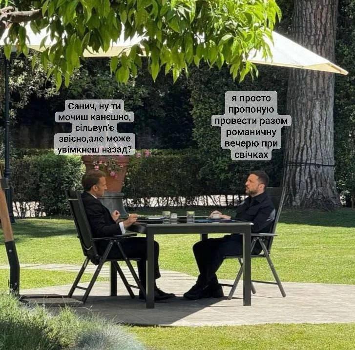 Меми дісталися й до зустрічі Трампа та Зеленського, яка відбулася під час похорон Папи Римського — українці припустили, що обговорювали саме відключення світла. Також з’явились креативні жарти про реакцію Макрона та можливу модернізацію європейської інфраструктури «за українським зразком». Працівників української енергосистеми вже назвали б легендарними героями, якби ті працювали в Європі.