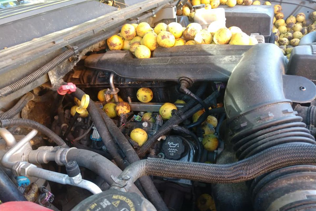 На останок, протягом кількох днів, білка зібрала в крилах і моторному відсіку автомобіля 160 літрів горіхів, що еквівалентно 95 кг.