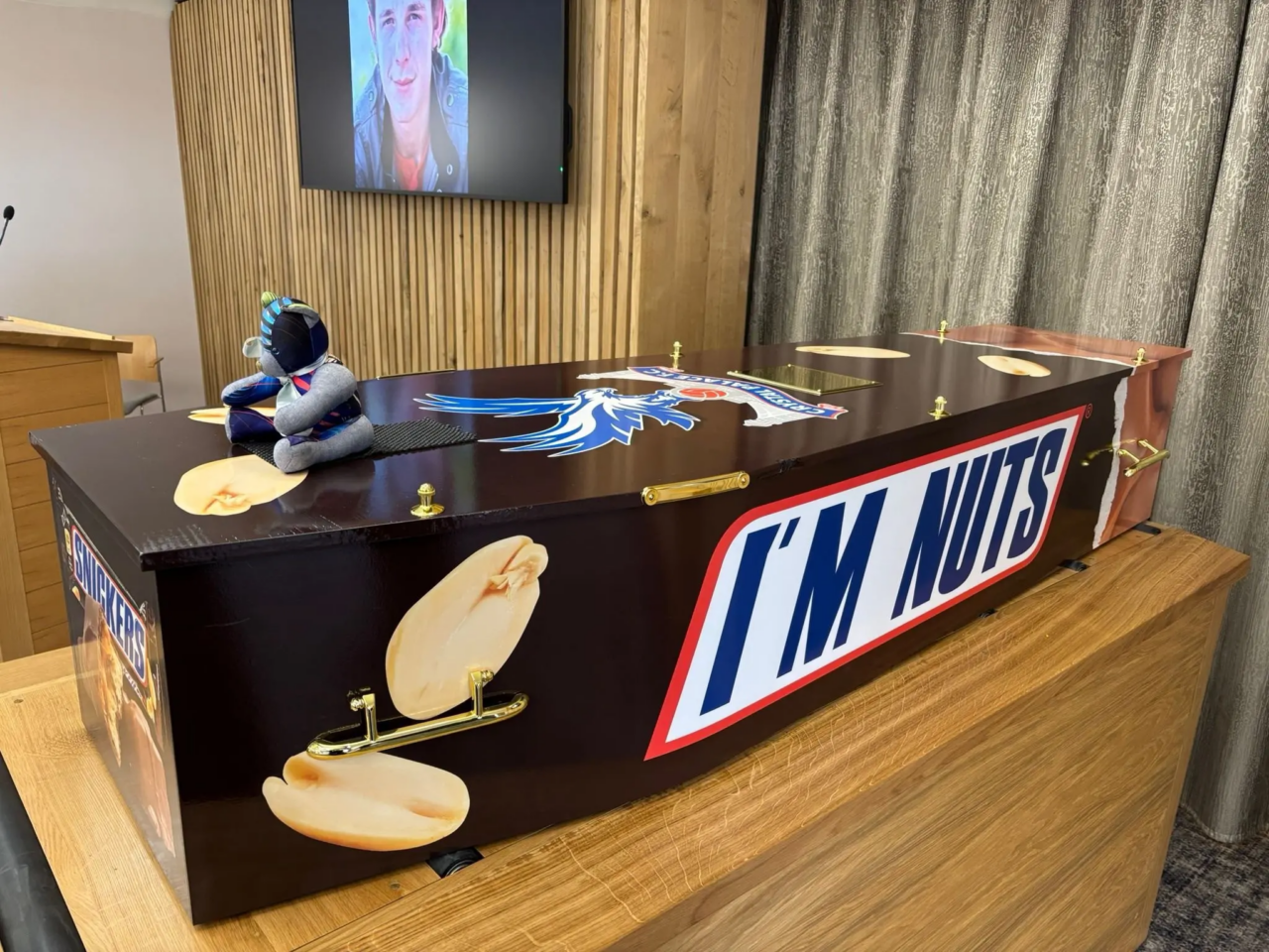 Рідні та друзі вирішили вшанувати почуття гумору покійного, створивши труну, яка нагадувала частково розпакований шоколадний батончик. На ній вони залишили напис «I’m nuts» («Я божевільний»), що відображало його веселу та нестандартну натуру.