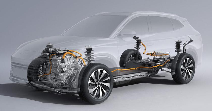 Платформа DM-i поєднує запатентовану літій-залізо-фосфатну батарею Blade Battery з бензиновим двигуном Xiaoyun, який оптимізовано спеціально для гібридних систем. Компанія стверджує, що двигун має рекордну теплову ефективність серед аналогів.