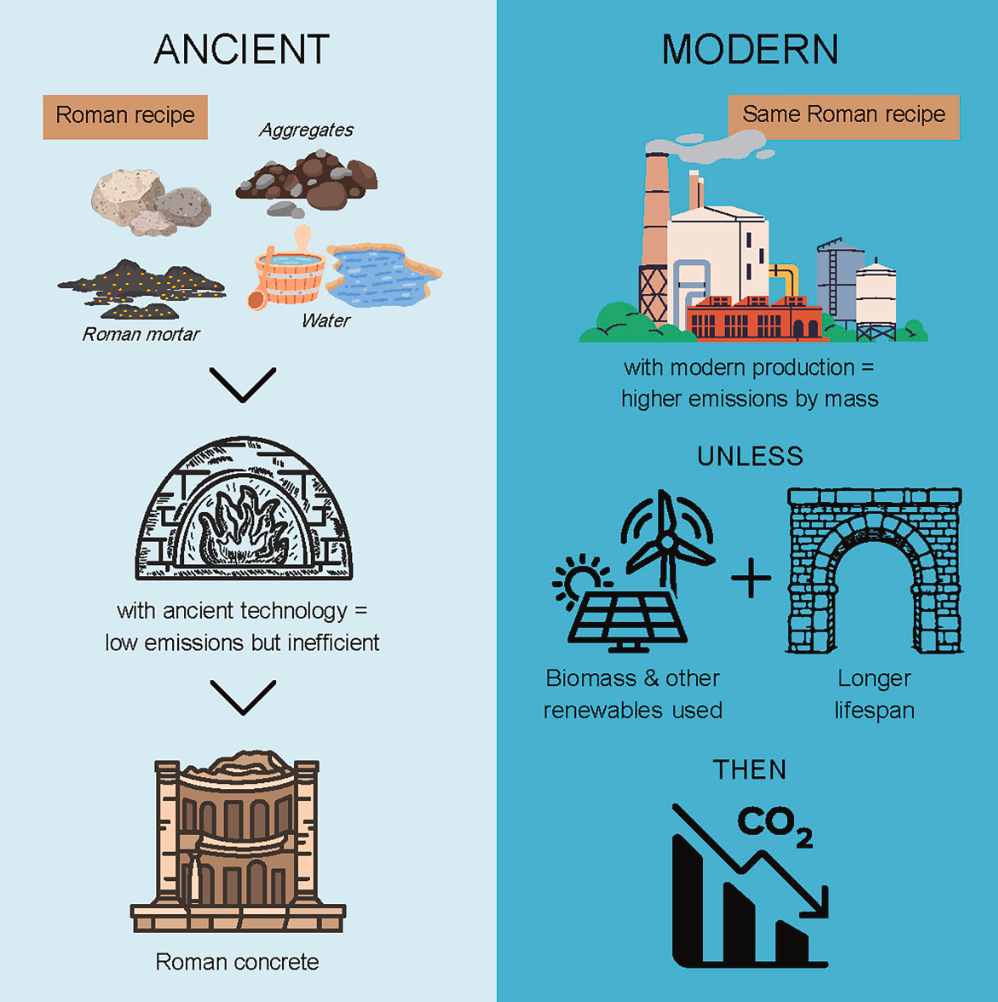 Експерти вважають, що вивчення римських методів виробництва цементу та їхнє поєднання з сучасними інноваціями може допомогти скоротити викиди будівельної галузі, яка нині відповідає приблизно за 8% глобальних викидів CO₂.