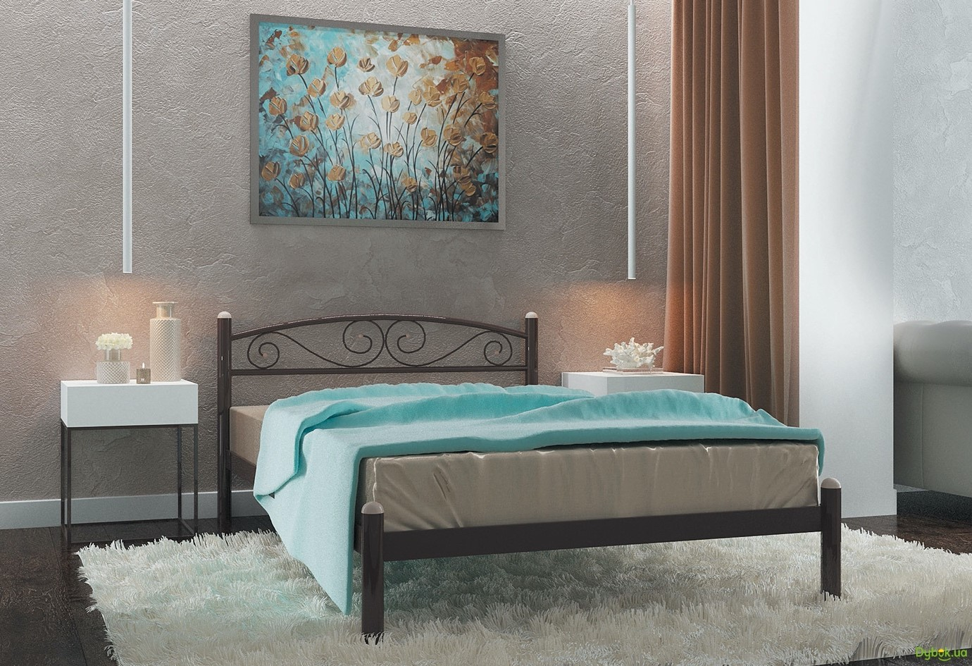 Відомий конкурент дерева – метал. Він виглядає не так масивно та громіздко, а тонкі металеві елементи надають виробам елегантності та загадковості. Ажурні візерунки пом’якшують тяжкість ліжка, проте вони досить холодні при дотику до них. Такий фактор і є головною відмінністю металу від теплої деревини.
