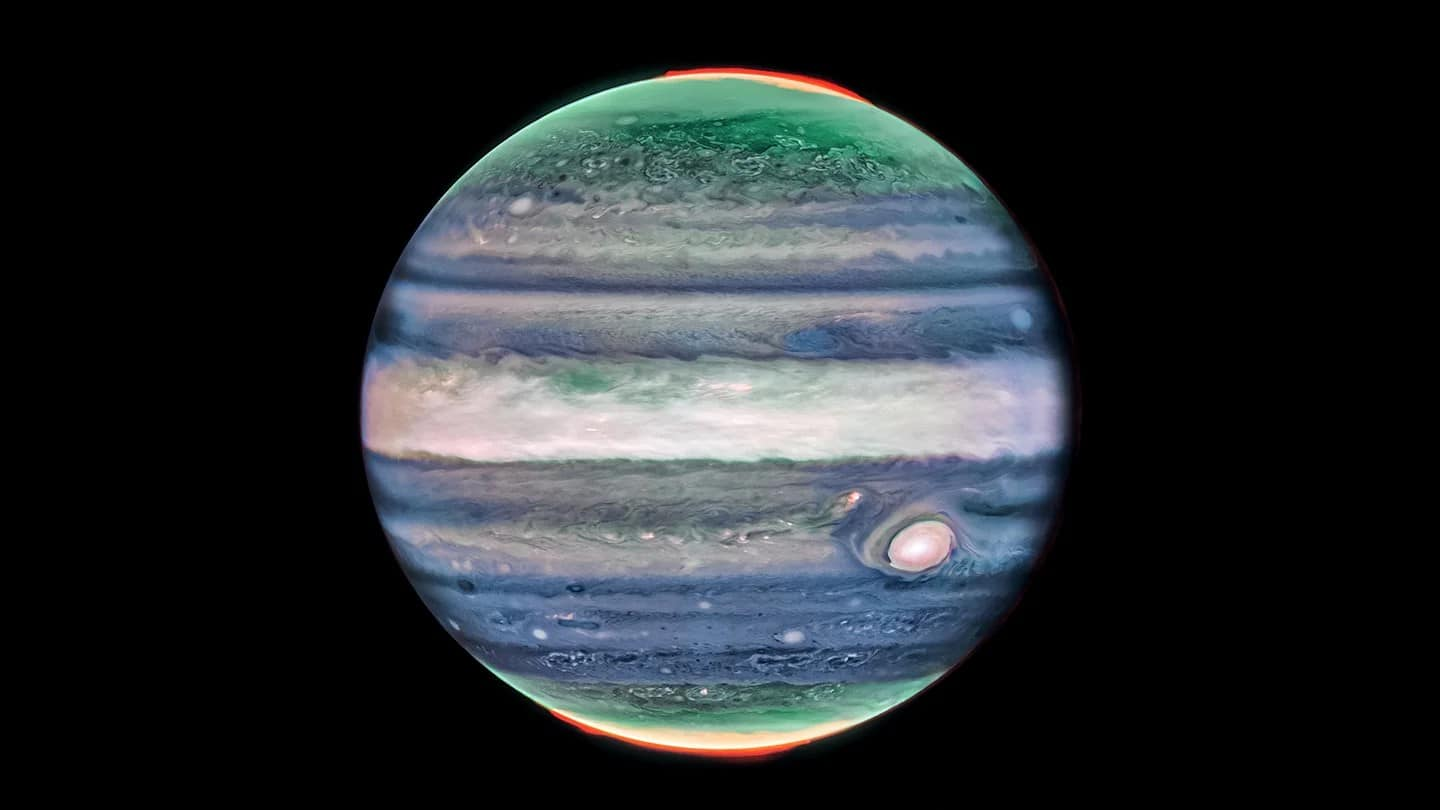 Спостереження вели за допомогою інструменту NIRCam у липні 2022 року. З різницею в 10 годин – доба на Юпітері – апарат робив знімки планети через чотири фільтри, кожен з яких “підсвічував” деталі атмосфери на різних висотах.