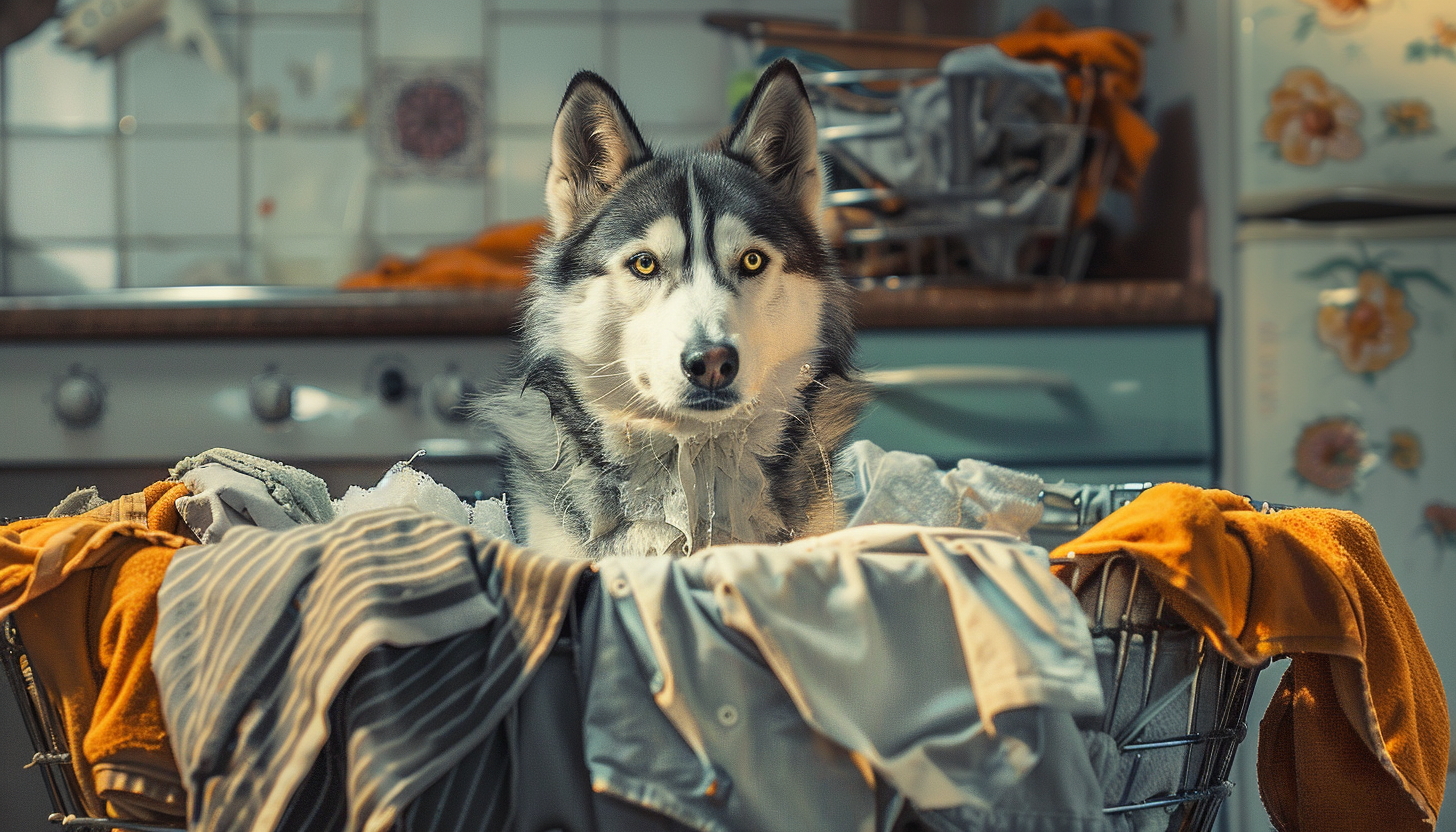 Спочатку слухняний хаскі просто копав воду, але в якийсь момент йому вдалося кинути в тазик футболку господаря. Собака продовжував замикати одяг під радісні вигуки господаря. Щоправда, порошок Атом не досипав. Втім, це не страшно.