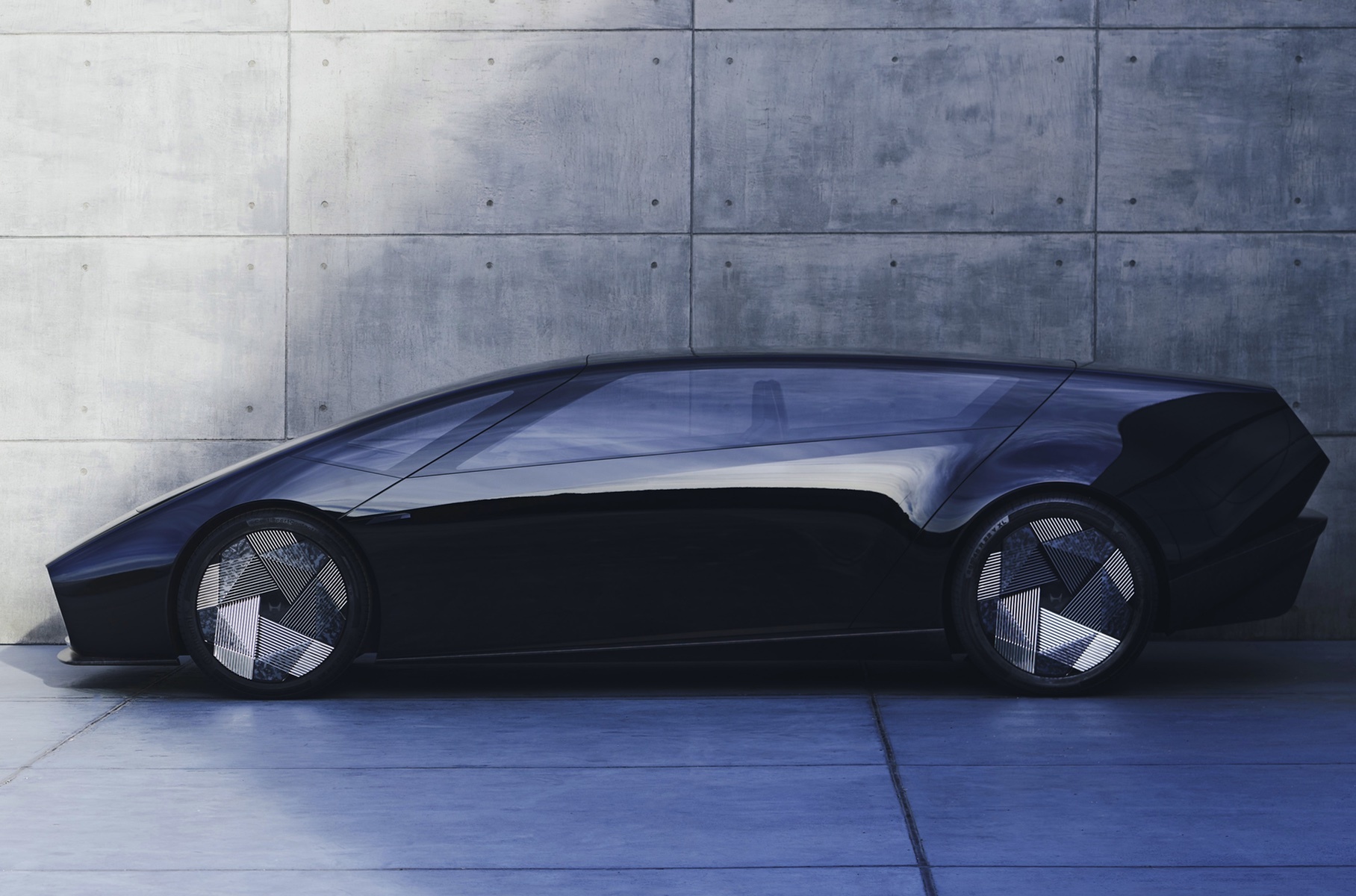 У Saloon нестандартний для седана однооб’ємний кузов і двоє бічних дверцят, які відчиняються вгору, забезпечуючи доступ на обидва ряди одночасно. Замість керма – штурвал, який забирається в передню панель при активації безпілотного режиму руху. Сама ж передня панель являє собою єдину сенсорну консоль, за допомогою якої здійснюється управління основними функціями автомобіля. Ще один тачскрін вбудований у підлокітник, що розділяє передні крісла.