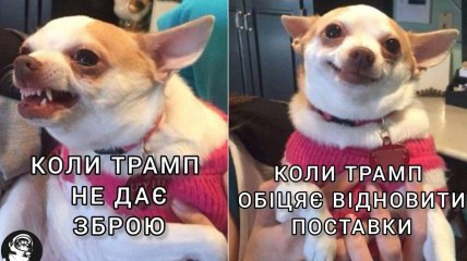 Не залишив байдужими й класичний мем із собакою чихуахуа — агресивною, коли допомоги нема, і милою, коли її обіцяють. Такі жарти стали не лише способом розрядити напругу, а й підтвердили: українці здатні з гумором і самоіронією адаптуватися до політичної турбулентності, зберігаючи внутрішню стійкість.