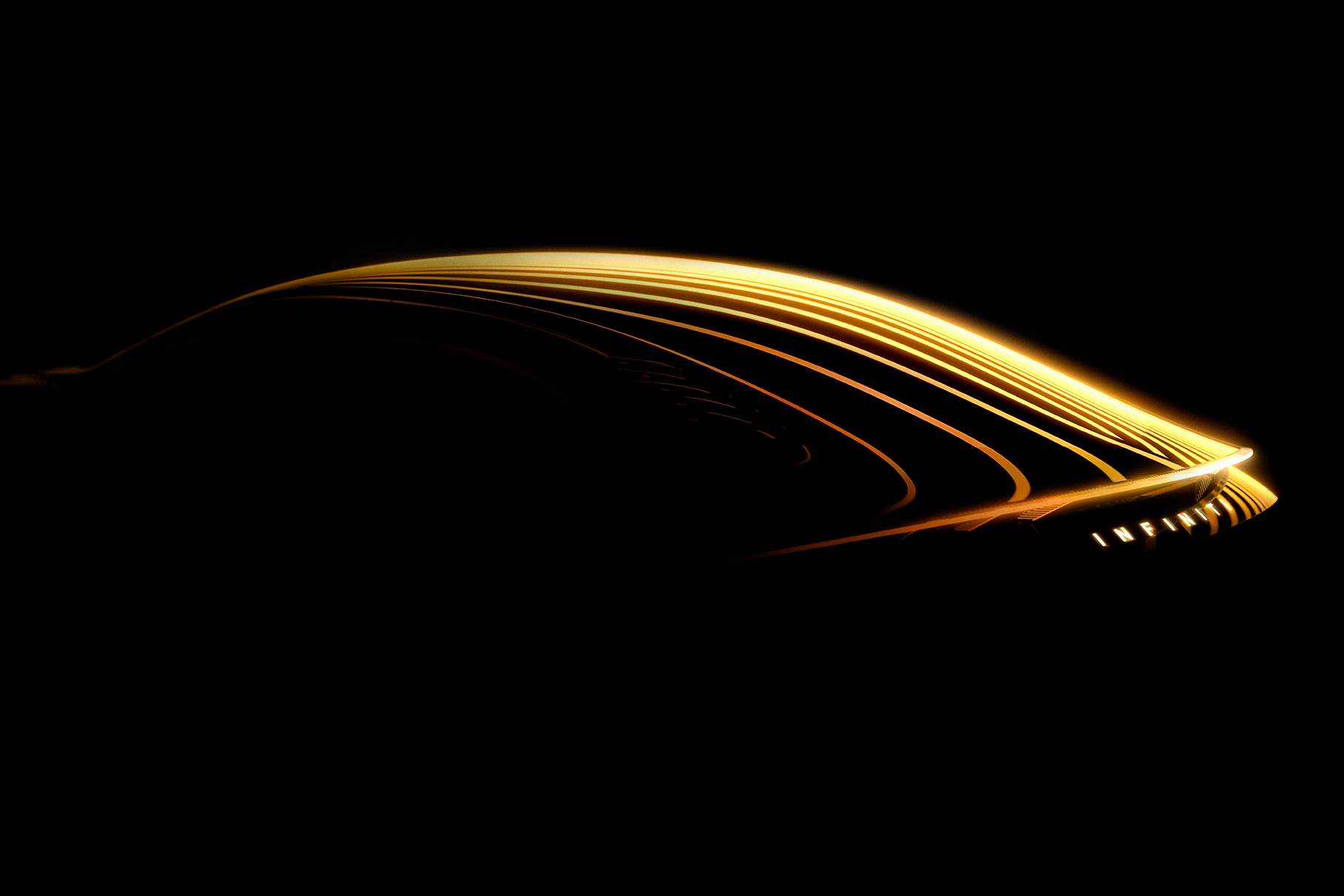 На зображенні видно затемнений силует Vision Qe із заваленим дахом, що плавно переходить у корму. Елегантний концепт, як характеризує його сама Infiniti, отримав новий підсвічений напис-логотип зі зміненим шрифтом. Це частина глобального ребрендингу, який стане вже четвертим за всю історію марки.
