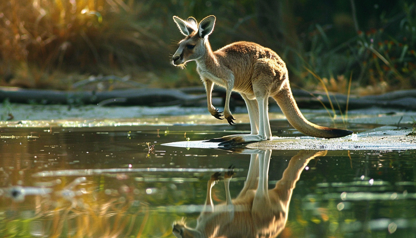 Кенгуру, якому знадобилося перебратися на інший берег гирла річки в Куданапе (Австралія), успішно скакав по мілководдю. Але виглядало все так, як ніби тварина знехтувала всі закони фізики і якимось чарівним чином навчилася стрибати по воді.
