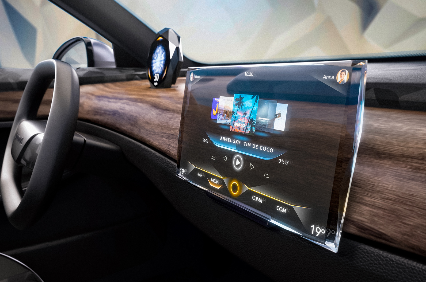 Інноваційну розробку фахівці представили в рамках виставки електроніки CES, яка проходить у Лас-Вегасі. На думку розробників, десятидюймовий прозорий екран стане головною частиною інтерфейсу “людина-машина” в оформленні інтер’єрів преміальних автомобілів.