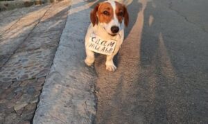 У мікрорайоні Ліски був помічений пес з табличкою «Здам житло».