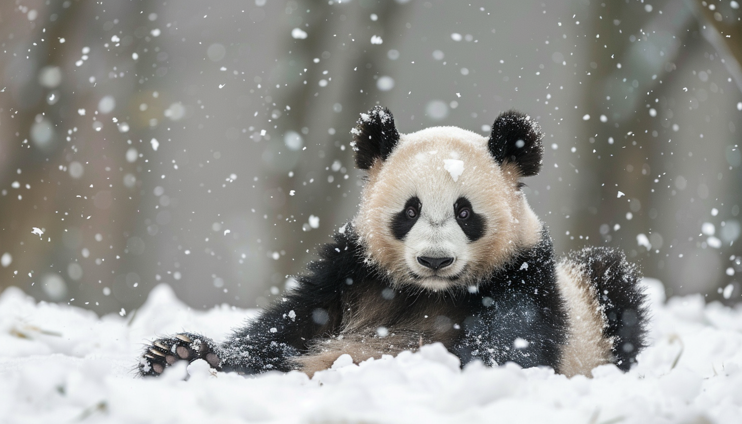 Панди Мей Сян та Тян Тян радіють снігу, спускаючись з гірки і граючись на снігу.