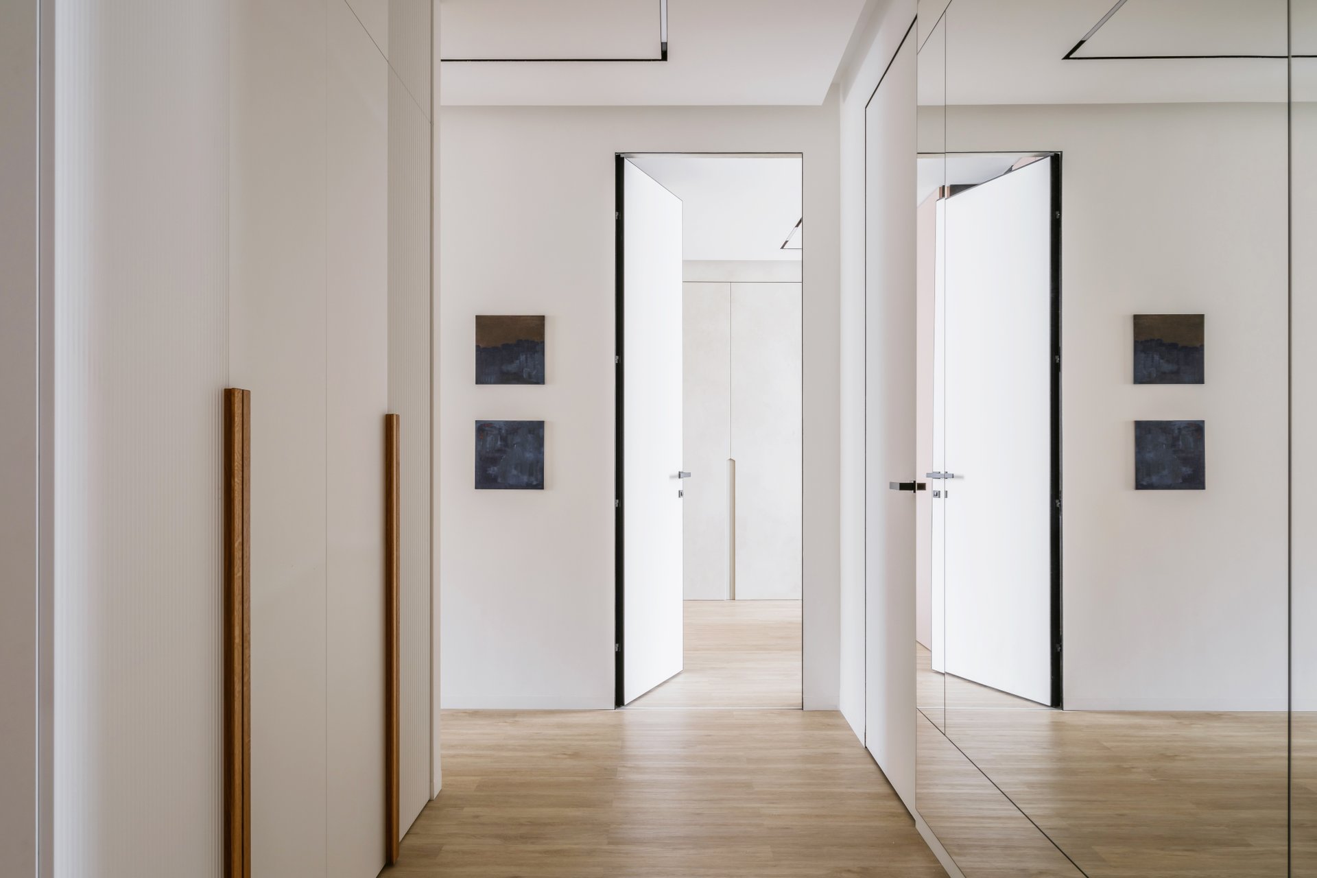 Ці двері ковзають уздовж стіни або вбудовуються в неї. Ідеальні для малогабаритних квартир чи сучасних інтер’єрів із відкритими просторами.