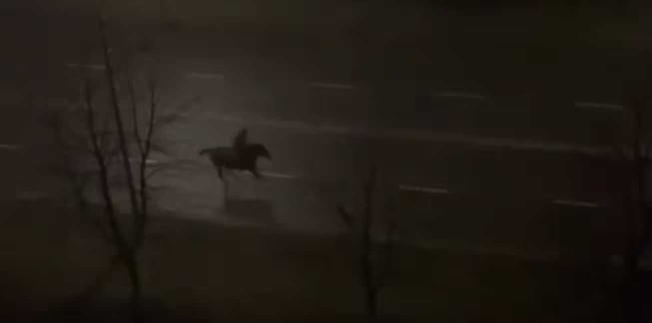 Відео, яке зняли свідки, показує, як патрульна поліція намагається зупинити вершника, що швидко мчить центральною вулицею міста. Причиною переслідування стало порушення комендатської години, коли чоловік виїхав на вулицю пізно вночі.