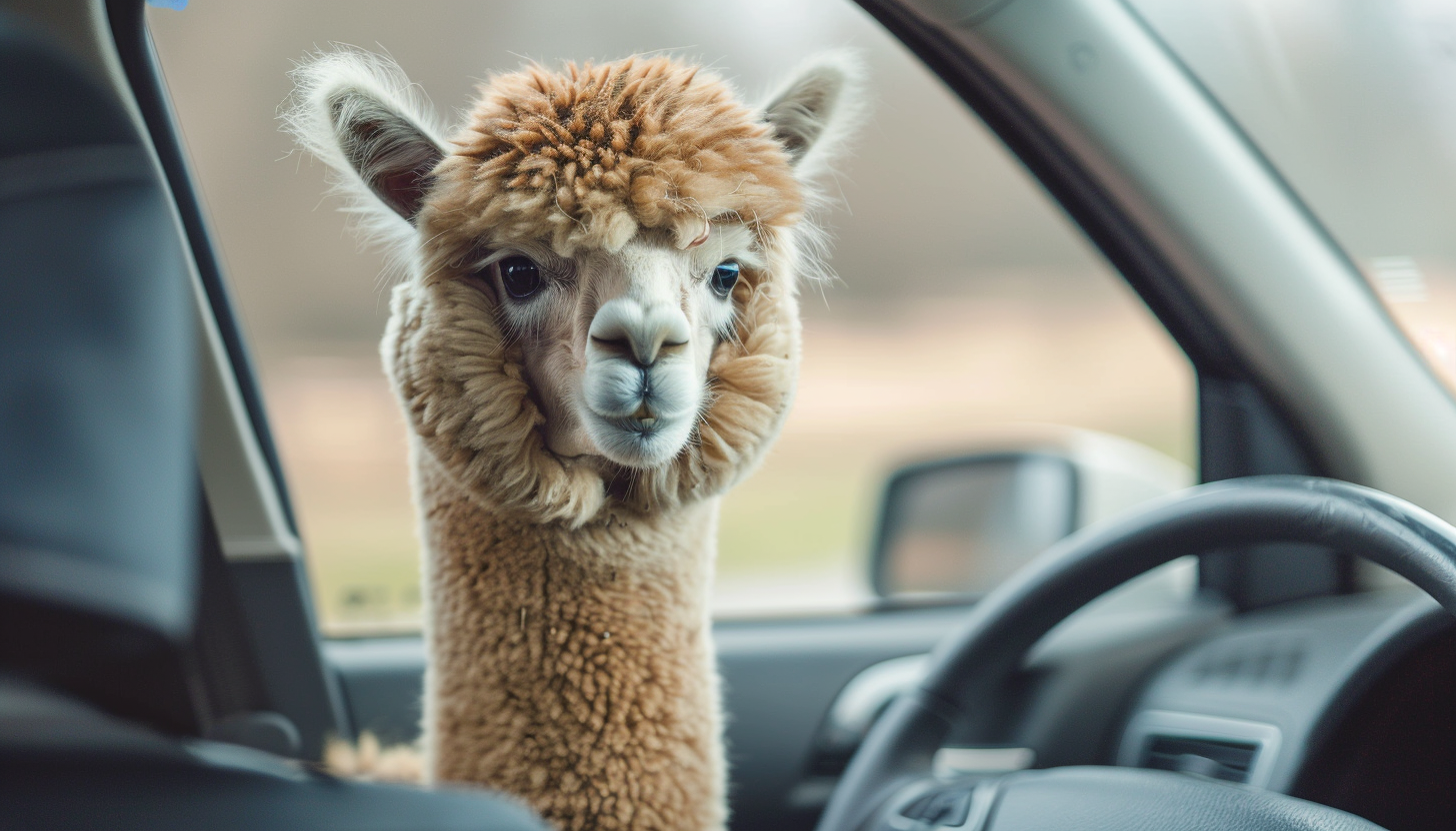 Чоловік за кермом автомобіля розмовляє зі своєю домашньою альпакою, а та йому відповідає. Їхнє спілкування виглядає дуже мило і кумедно, враховуючи, що альпака і її господар чимось схожі між собою. У обох милі кучерики пісочного кольору.