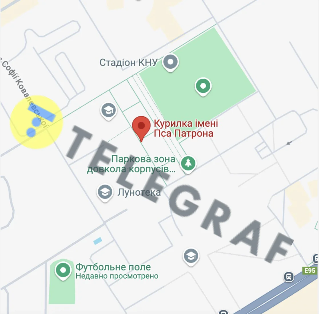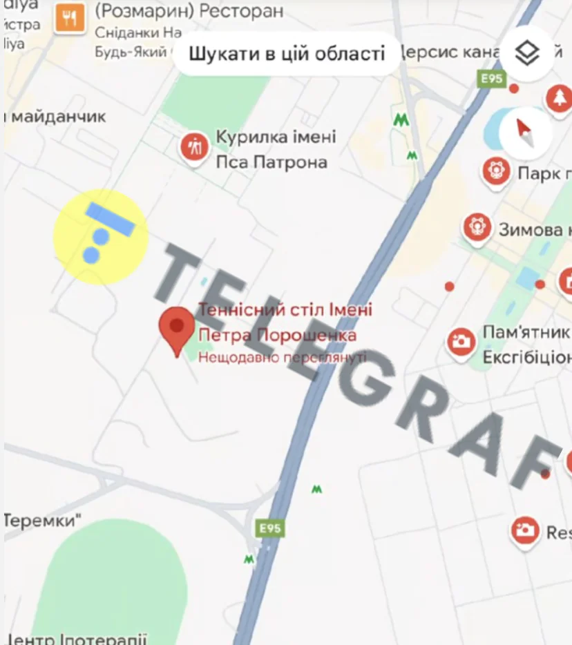 Відео зняте неподалік станції метро Виставковий центр. Окрім столу, на кадри потрапила ще одна курйозна локація — курилка імені Пса Патрона. Видання “Телеграф” перевірило ці назви на мапі: Google не показав тенісний стіл, зате курилка на честь Патрона справді існує.