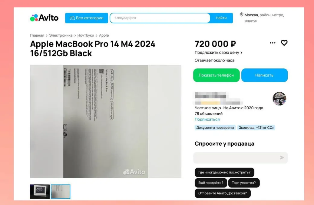 Після фотографій коробки M4 MacBook Pro і подальшого відео розпакування, невипущена модель була виставлена на продаж на російському сайті оголошень – звісно, за сильно завищеною ціною.