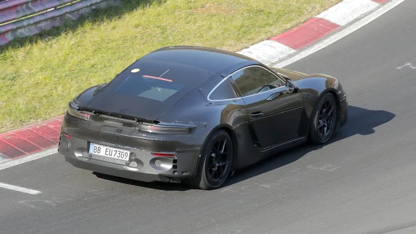 Кузов нового Cayman зберігає знайомий середньомоторний силует, однак помітні зміни: подовжений капот і похилий дах роблять профіль автомобіля більш схожим на 911. Камуфляж приховує багато деталей, але вже видно, що залишаться класичні дверні ручки, а не висувні як у Taycan.