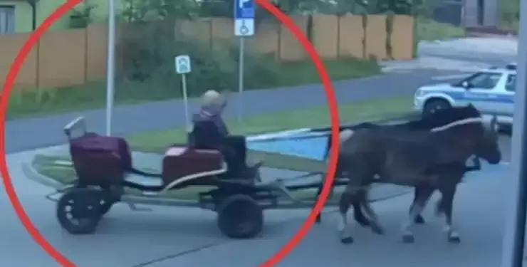 У Польщі 69-річний чоловік приїхав до поліцейського відділку п’яним… на возі, запряженому кіньми. Це сталося після того, як його позбавили водійських прав через попередні випадки керування транспортом у стані алкогольного сп’яніння. Камери відеоспостереження зафіксували, як він неквапливо заїхав на парковку поліцейської дільниці, привітавшись рукою, сидячи в кареті з двома кіньми.