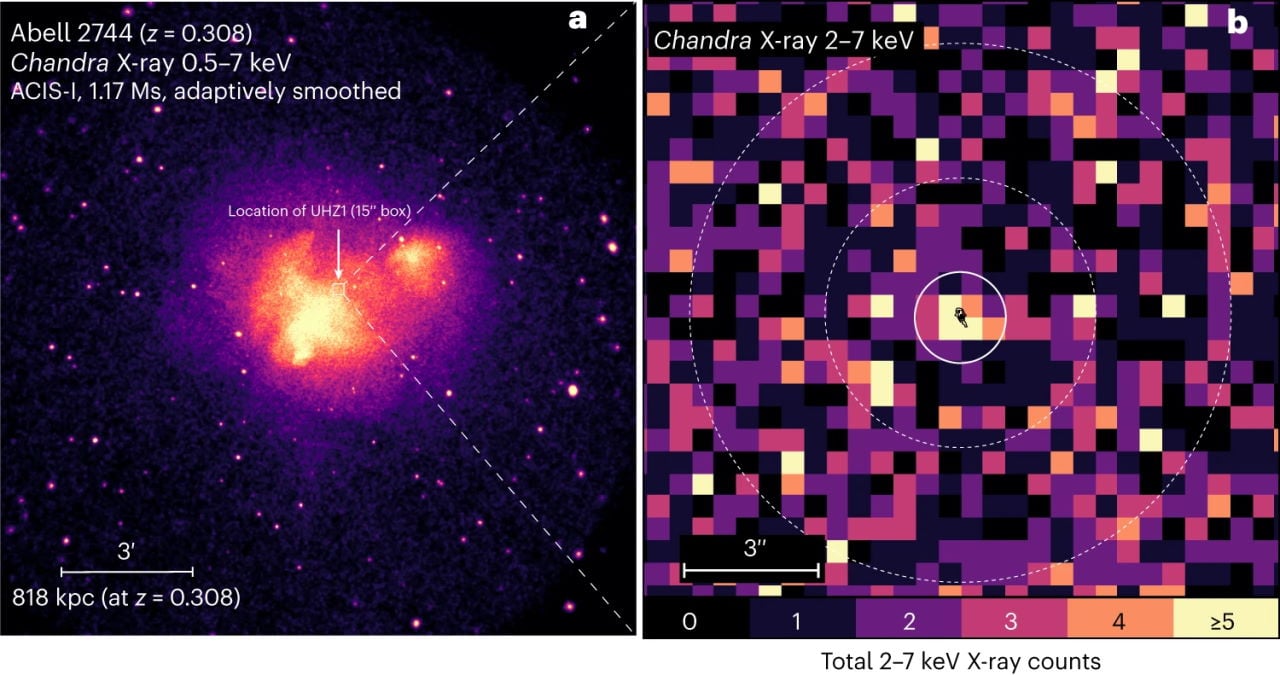 Обсерваторія «Чандра» виявила надмасивну чорну діру, яка існувала менш ніж через пів мільярда років після Великого вибуху. Попри такий короткий проміжок часу, що минув з появи Всесвіту, ця чорна діра змогла накопичити масу у понад 10 мільйонів Сонць. Астрономи вважають, вона виникла внаслідок колапсу не масивної зорі, а цілої хмари, завдяки чому майже одразу набула значної маси. Про відкриття розповіло видання Ars Technica, а стаття астрономів опублікована у Nature Astronomy.