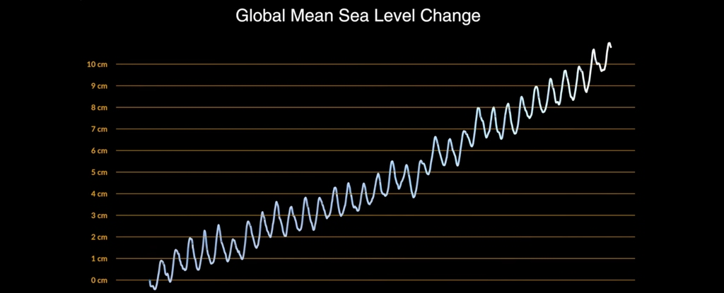 У 2024 році рівень Світового океану піднявся на 0,59 см — більше, ніж прогнозовані 0,43 см. Про це повідомляють дані NASA, отримані з п’яти міжнародних супутників, включно з високоточним Sentinel-6 Michael Freilich. Це найбільший річний приріст за останні десятиліття.