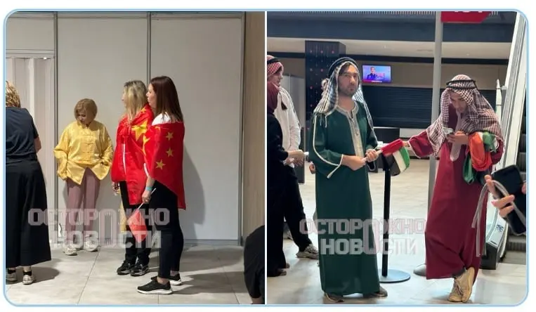 На фото та відео – переодягнені актори. Один із них зізнався: «Прийшов по приколу, друзі покликали. Хотів би побачити справжнє “Євробачення”, але раз його немає – подивлюсь це. Шукаю фанатів Шамана, але поки не знайшов». Декого одягнули у «шейхів», а студентів з М’янми – у «китайців», хоча їхня країна навіть не брала участі.