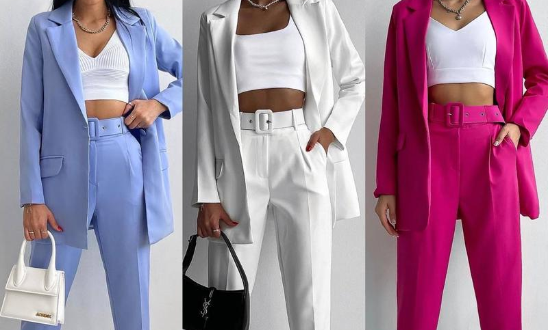Кроме того, играет роль назначение образа. Для офиса подойдут классические модели с блузой и жакетом, а для прогулок — расклешённые варианты с удобными свитерами или футболками. Цветовая палитра тоже важна. Монохромные комплекты делают силуэт вытянутым и стройным, а контрастные сочетания помогают расставить акценты.