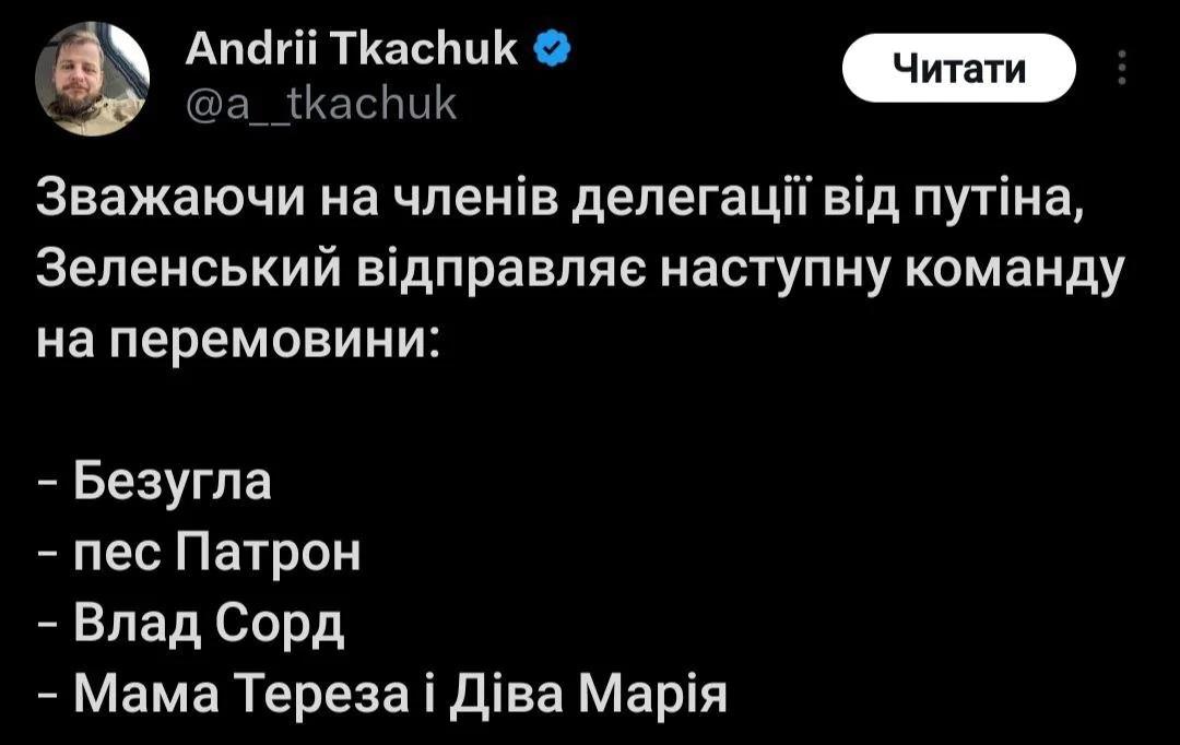 Переговори одразу стали однією з найгарячіших тем у суспільному обговоренні. Не залишилися осторонь і українські користувачі соцмереж, які традиційно реагують на серйозні події з гумором. Зокрема, інтернет активно обговорює переговори через жарти, меми та іронічні дописи.