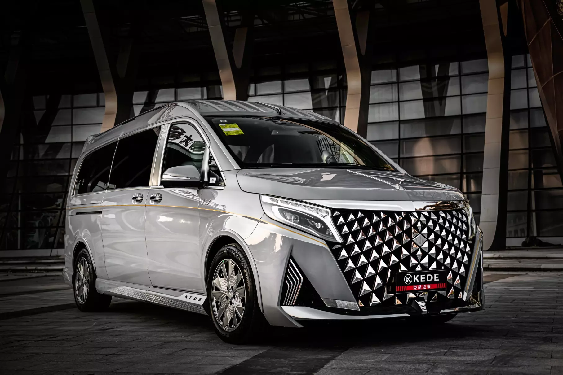 Проєкт Kede починається зі зміни обвісу та збільшення висоти даху. З новими бамперами, порогами та дисками сприйняття консервативного Mercedes-Benz V-Class змінюється. Особливо вражають гігантські лускаті радіаторні грати та статуетка на капоті — мало хто пропонує подібні дизайнерські рішення. Називається мінівен – Kede Xiangyi MH9.