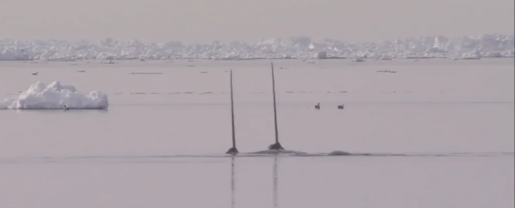 “Нарвали відомі своєю поведінкою ‘бивнювання’, коли вони одночасно піднімають бивні майже вертикально з води, схрещуючи їх у, можливо, ритуальній поведінці для оцінки суперника або демонстрації своїх якостей потенційним партнерам”, — пояснює еколог Грег О’Коррі-Кроу з Атлантичного університету Флориди.