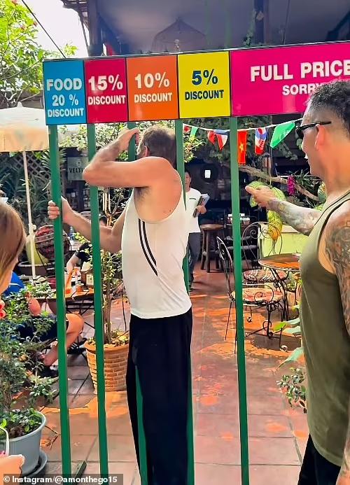 Ресторан встановив металеву конструкцію з кількома секціями різної ширини. Чим вужчу секцію вдасться подолати, тим більша знижка чекає на клієнта. Найстрункіші можуть розраховувати на знижку до 20%, інші — на 15%, 10% або 5%. А якщо не вдалося пройти жодну секцію, доведеться платити повну ціну — про це нагадує напис у найширшому “вікні”: “Вибачте, повна ціна”.