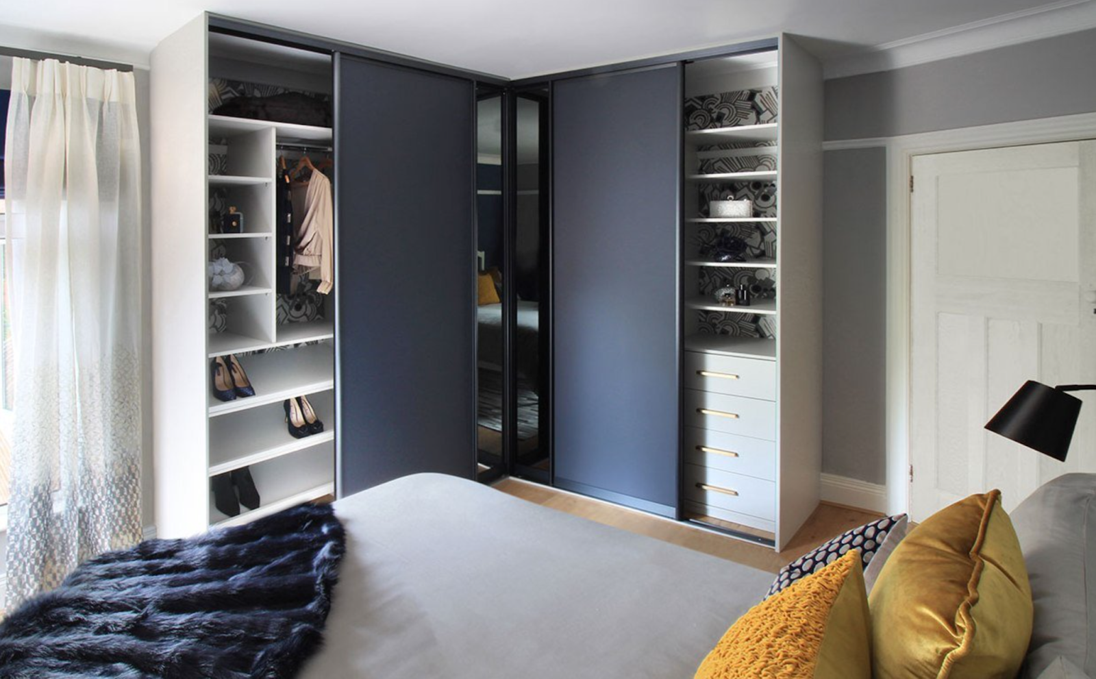 Перше, на що слід звернути увагу – тип конструкції. Це можуть бути корпусні та вбудовані кутові шафи купе. У корпусних зразках є всі частини – задня та бокові стінки, кришка, днище, фасад та внутрішнє наповнення. У вбудованих системах зберігання наявні тільки фасади та внутрішні деталі. Для встановлення вбудованих шаф потрібні ідеально рівні поверхні, тому що розсувна система для фасаду кріпиться безпосередньо до підлоги та стелі кімнати.
