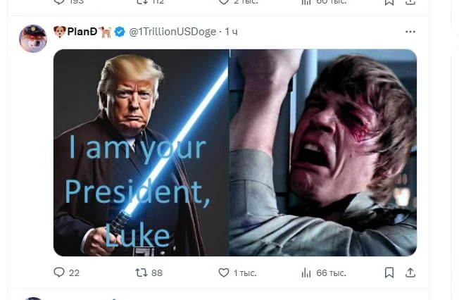 У коментарях до поста вже з’явилися перші меми та глузливі реакції. Дехто жартома порівняв Білий дім із цирком, а хтось навіть перефразував культову фразу з фільму: «Люк, я твій президент». Соцмережі рясніють іронією та політичними підколками.