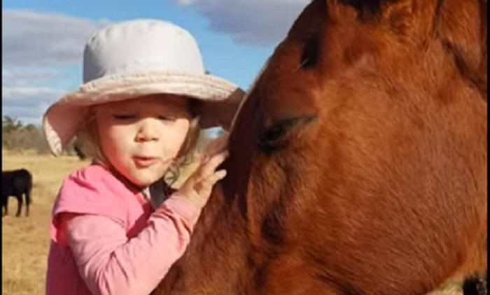 Австралійка Келлі Томас спокійно працювала на своїй фермі, коли її трирічна донечка Майф видерлася на стовп і почала співати. Цей несподіваний виступ одразу привернув увагу двох сімейних коней — Честера і Тедді. Цікавим тваринам стало цікаво, що робить дівчинка, тож вони підійшли ближче, щоб послухати її спів.