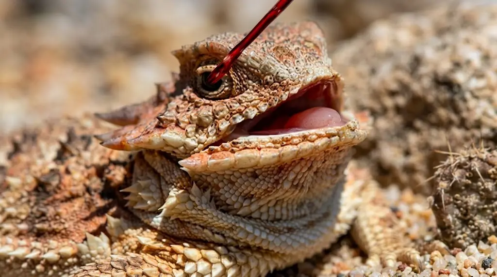 Рогата ящірка з роду Phrynosoma використовує один із найрадикальніших способів самозахисту — вона буквально стріляє кров’ю з очей. Нове дослідження пояснює, як працює цей механізм і чому він ефективний проти хижаків.