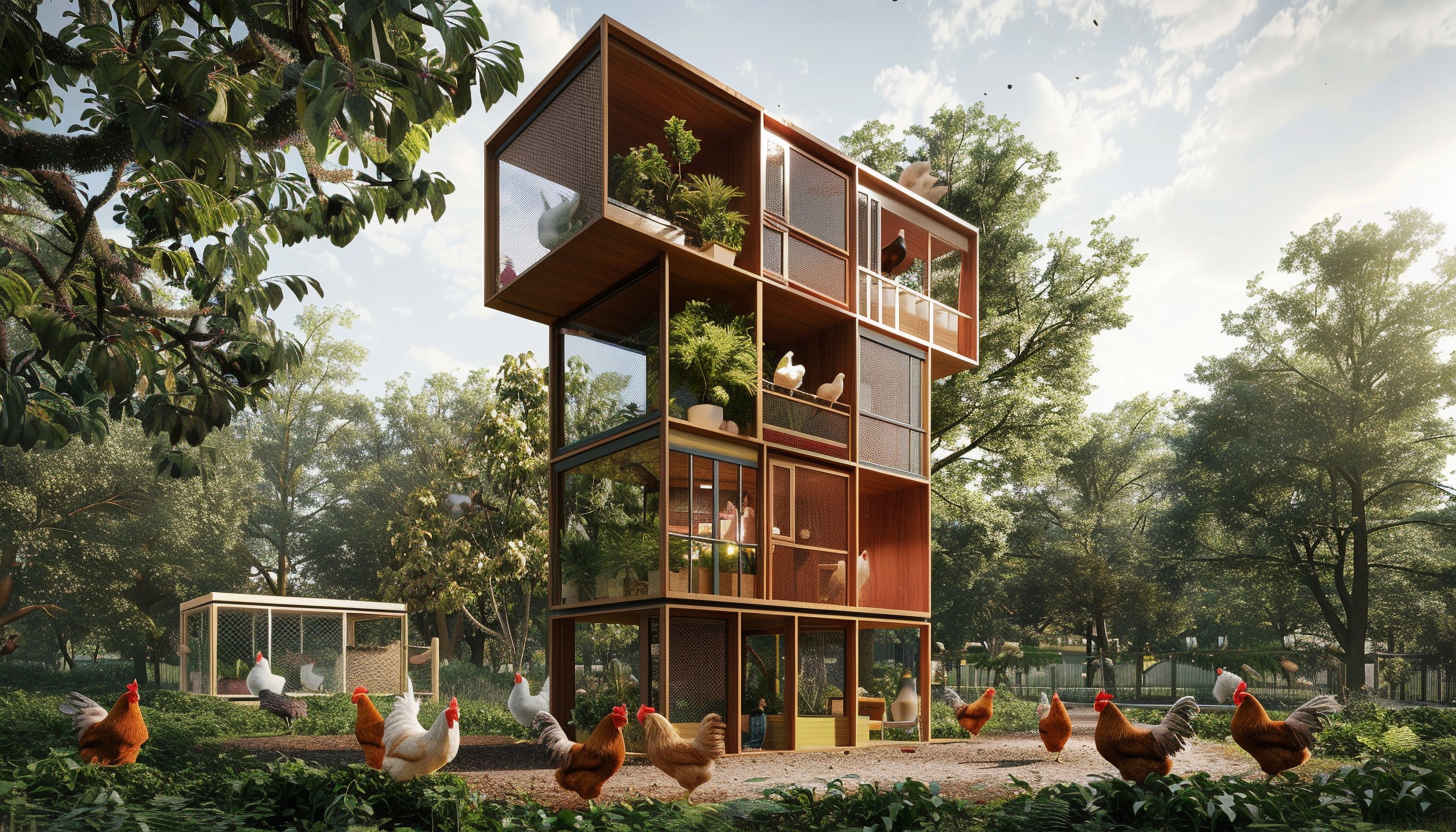 Житло для курей облаштувала 31-річна Катріона Шовлін, випускниця ветеринарного факультету з Кента. Курям пропонують збалансовану, висококалорійну їжу, м’яку підстилку, окрему хатинку, гойдалки та пилову ванну, де відвідувачі можуть вигнати паразитів зі свого тіла.