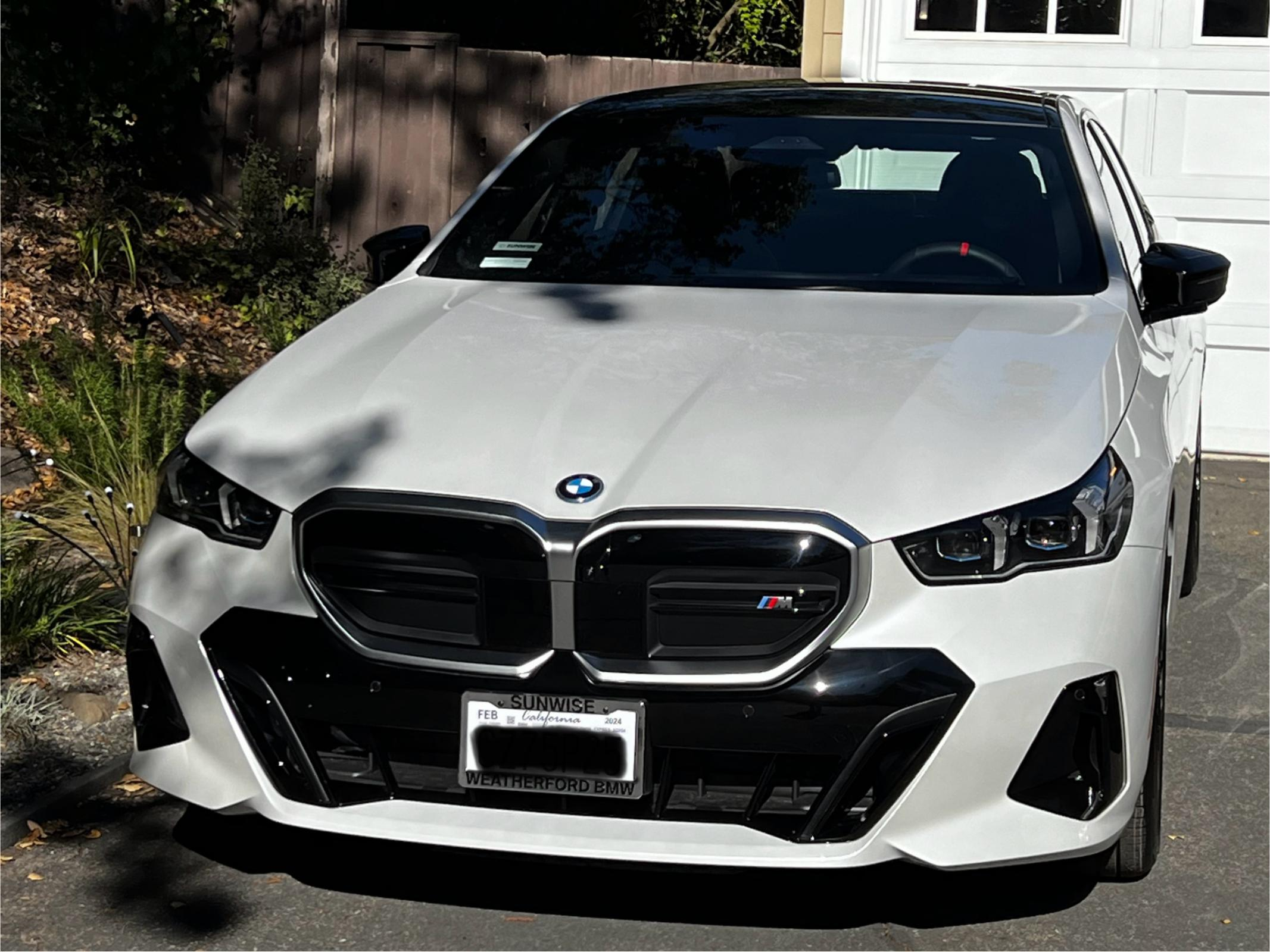 Завдяки більш розвиненої аеродинаміки BMW i5 M60 виглядає агресивніше за звичайну i5. Цікаво, що попри те, що це електромобіль, тут збережено повну подобу передньої частини бензинового авто – є і характерні фірмові ніздрі, і внизу повітрозабірник.