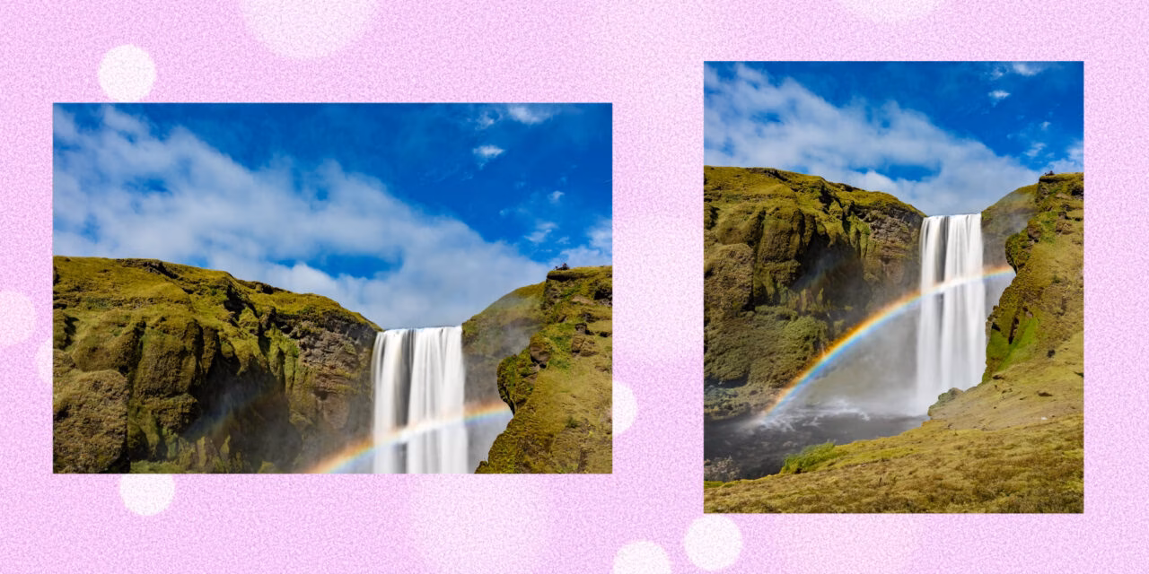 Все працює як обрізання навпаки. Замість того, щоб усунути все зайве, функція дозволяє виправити композиційні помилки або розширити поле зору. Для цього після розширення зображення за допомогою «Рамки» достатньо натиснути кнопку «Генерувати» на панелі генеративного розширення. Можна додати текстовий опис або залишити деталі на відкуп нейромережі.