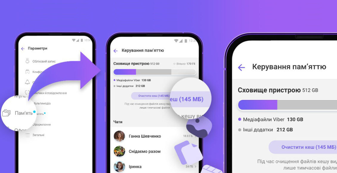 Нова функція керування сховищем у Viber дозволяє користувачам очищувати кеш додатка або обирати медіафайли, коштом яких вони хочуть звільнити місце. Керування сховищем покаже, скільки місця Viber займає на пристрої, скільки вільного місця для зберігання залишилося і скільки займає медіавміст кожного окремого чату та каналу.