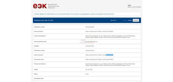 Перспективний таблет Redmi успішно пройшов сертифікаційні формальності в Євразійській економічній комісії. Схвалена версія пристрою призначена для світового ринку.