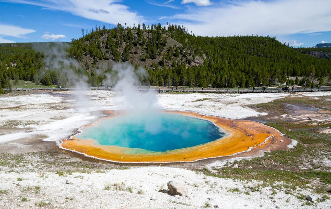 Під час першого у 2025 році геологічного обстеження басейну Норріс у Єллоустонському національному парку фахівці помітили нову геотермальну особливість, якої не було раніше. На північно-західній частині місцевості, відомої як «Острів дерев», замість рівної ділянки землі тепер зяє отвір діаметром близько 4 метрів, заповнений молочно-блакитною водою.
