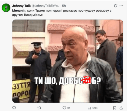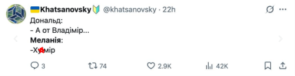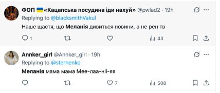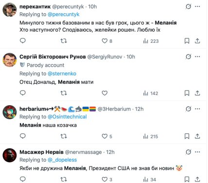 Користувачі кепкують, що без Меланії Дональд Трамп взагалі міг би не знати про ракетні удари, бо не дивиться новини. Особливо жартують про те, що якби не вона, американський президент міг би сприймати російські бомбардування як неважливі дрібниці. Її називають «матір’ю» за турботу про Україну.