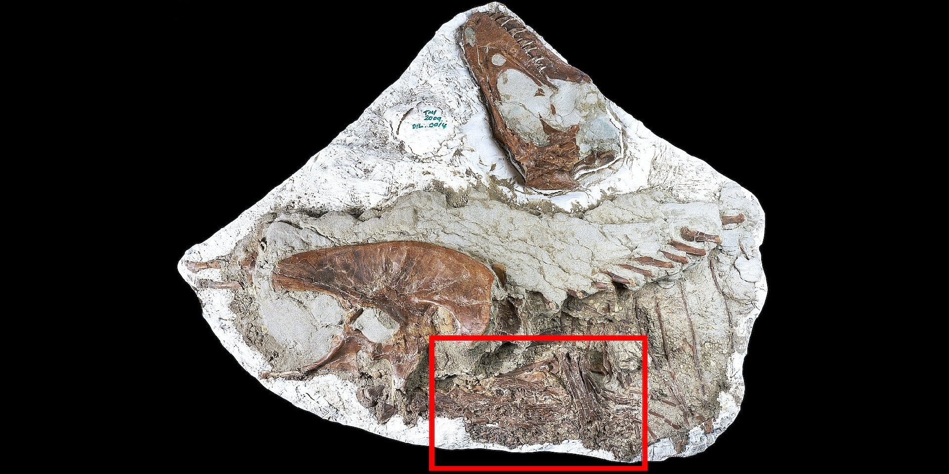 З огляду на все вищесказане, знахідка скелета зовсім юного горгозавра, що добре зберігся, стала справжнім святом для палеонтологів вже сама по собі. Спробуйте уявити тільки, яке було їхнє тріумфування, коли під час очищення скам’янілості під її ребрами стали проступати кістки досконалого іншого виду динозаврів. Співробітники університету вирішили продовжити обробку скам’янілості “навиворіт” – її перевернули так, щоб вичищати останки зсередини.