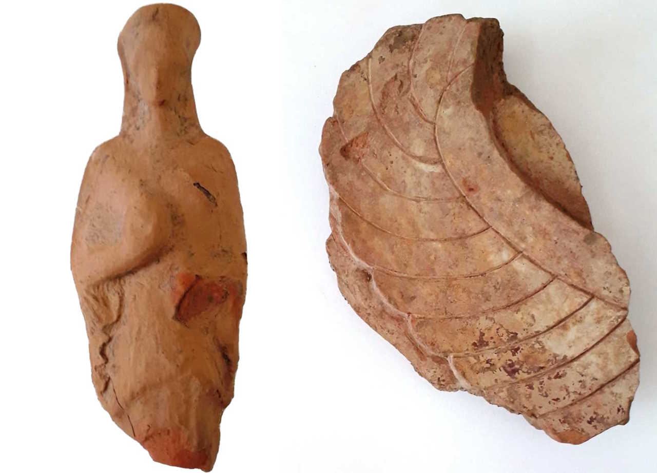 Серед знахідок археологів значиться бронзова фігурка тварини, схожої на собаку, а також глиняна статуетка жінки. Також вчені знайшли бронзову голову змії, глиняне крило, яке могло бути частиною статуетки сфінкса, та фрагмент золотого намиста. Ймовірно, що ці прикраси призначалися богу Посейдону, поклонінню якого приписують храм, або ж іншим давньогрецьким богам.