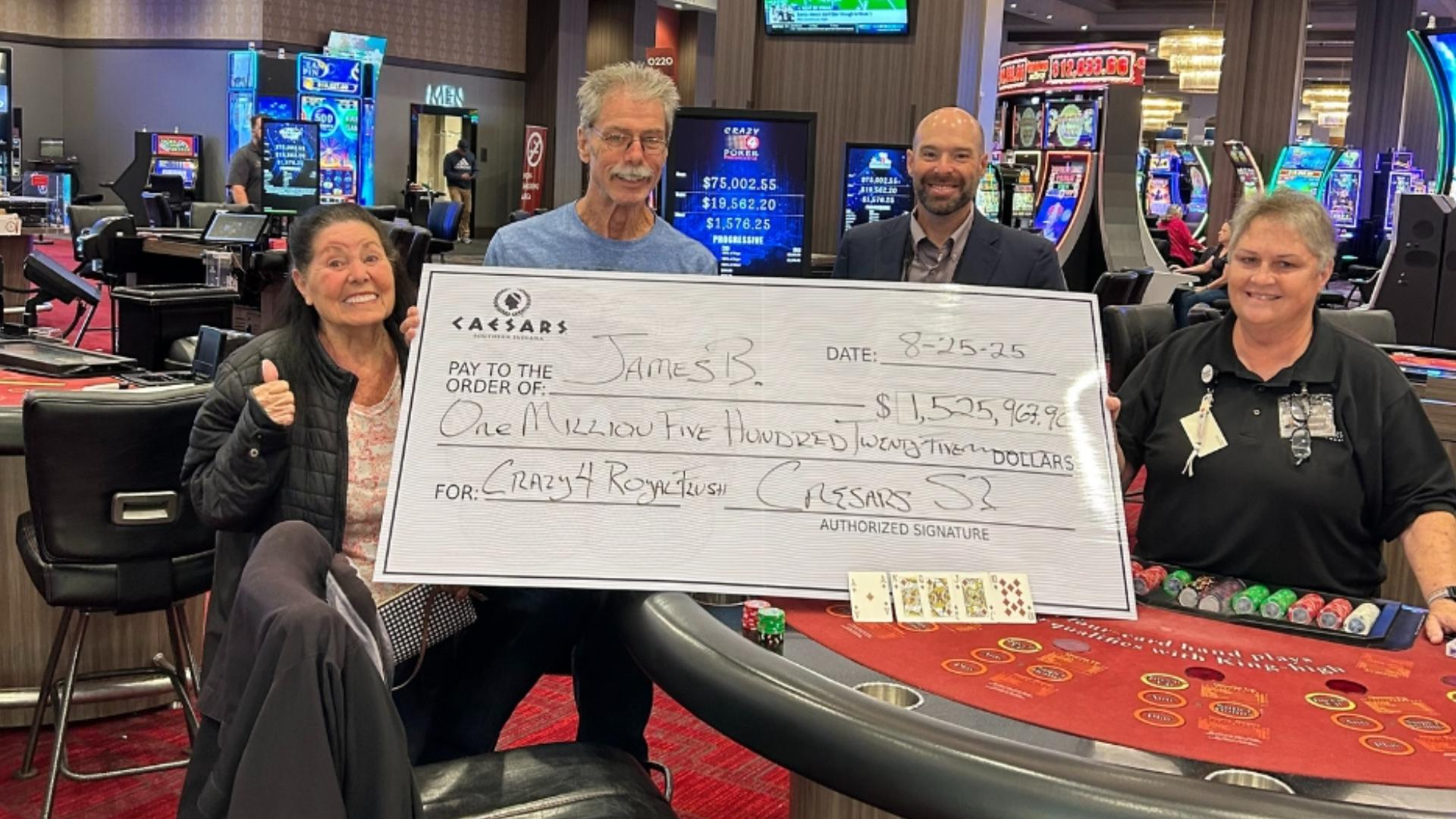 В американському штаті Індіана відвідувач казино Caesars Southern Indiana виграв рекордний джекпот у розмірі 1,5 мільйона доларів. Переможцем став Джеймс Б., який майже 30 років був постійним клієнтом закладу в місті Елізабет. Чоловік грав у Crazy 4 Poker і отримав роял-флеш, що приніс йому найбільший прогресивний виграш в історії цього казино.