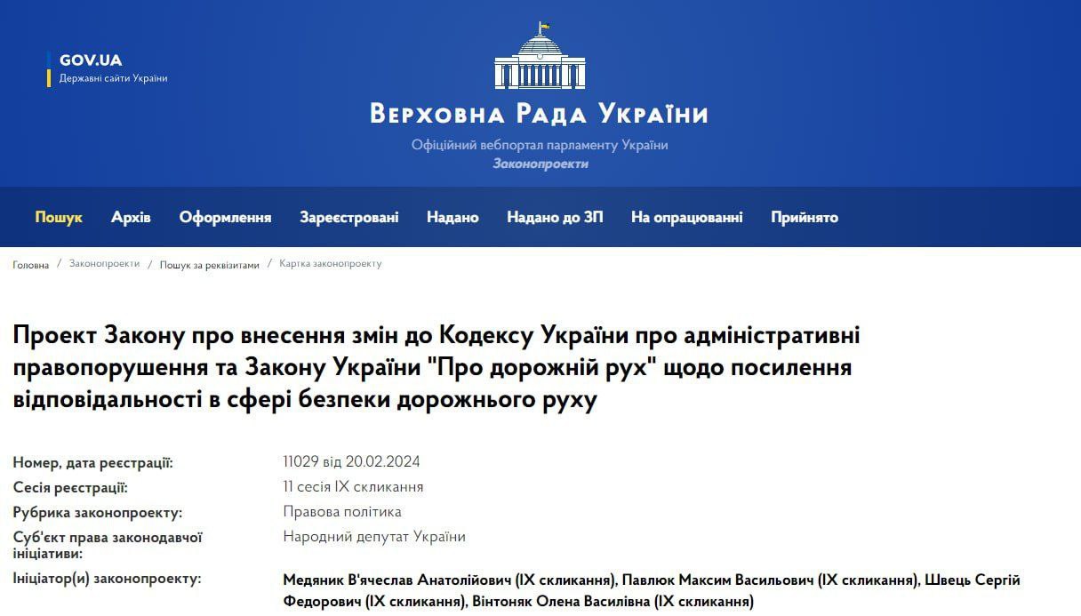 В Україні знову хочуть посилити відповідальність водіїв транспортних засобів. Відповідний законопроєкт вже зареєстрований у Верховній Раді.