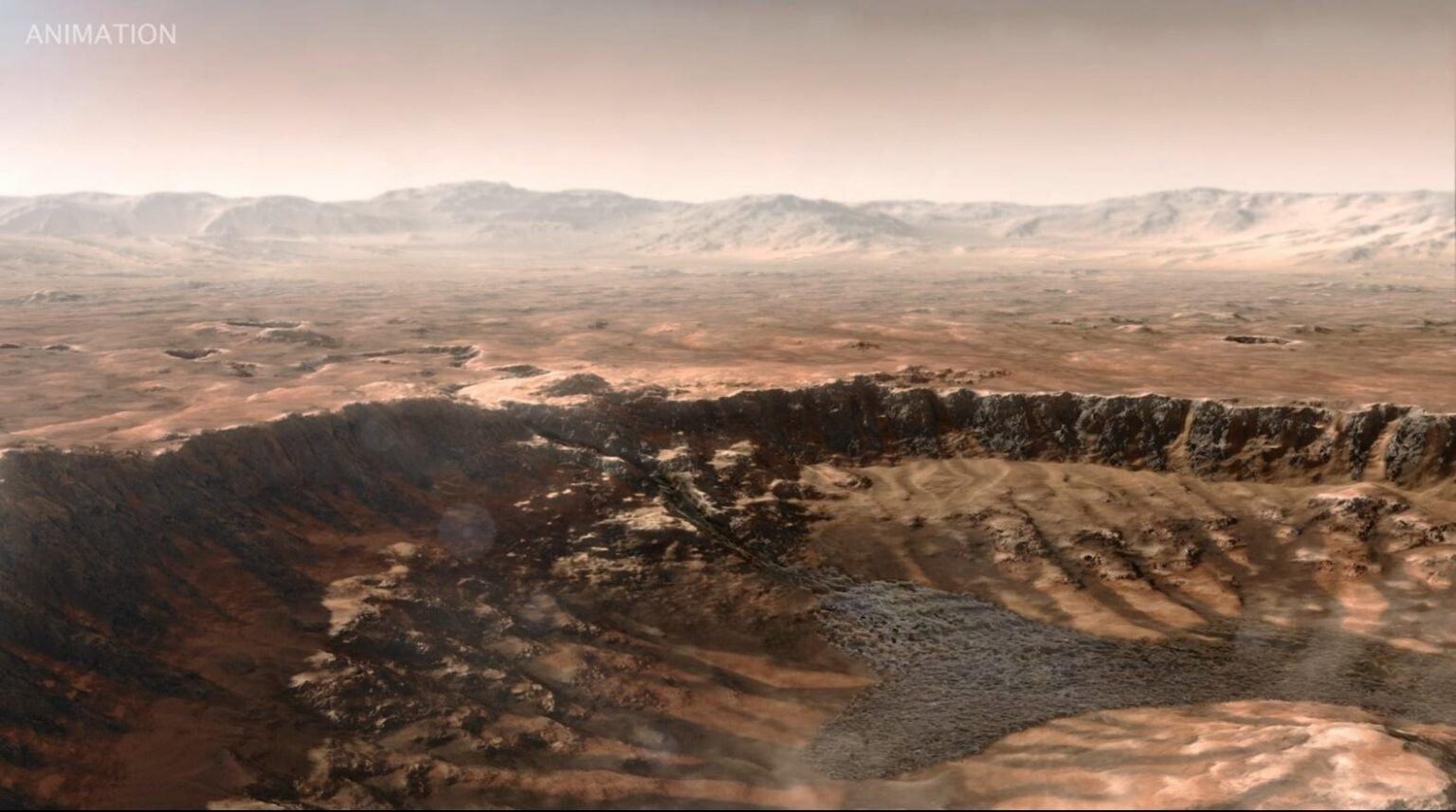 Лабораторія реактивного руху NASA опублікувала анімаційний концепт того, який вигляд марсіанський кратер Єзеро, який майже три роки досліджує ровер Perseverance, міг мати в далекому минулому Червоної планети.