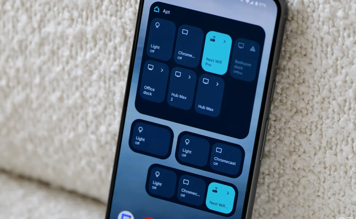 Віджет Google Home забезпечує “швидкий контроль над вашими діями, автоматизацією та пристроями”. Вибране може займати всю сторінку домашнього екрану або зменшуватися до 2×1 з різними конфігураціями між ними. Це один з найбільш гнучких віджетів.