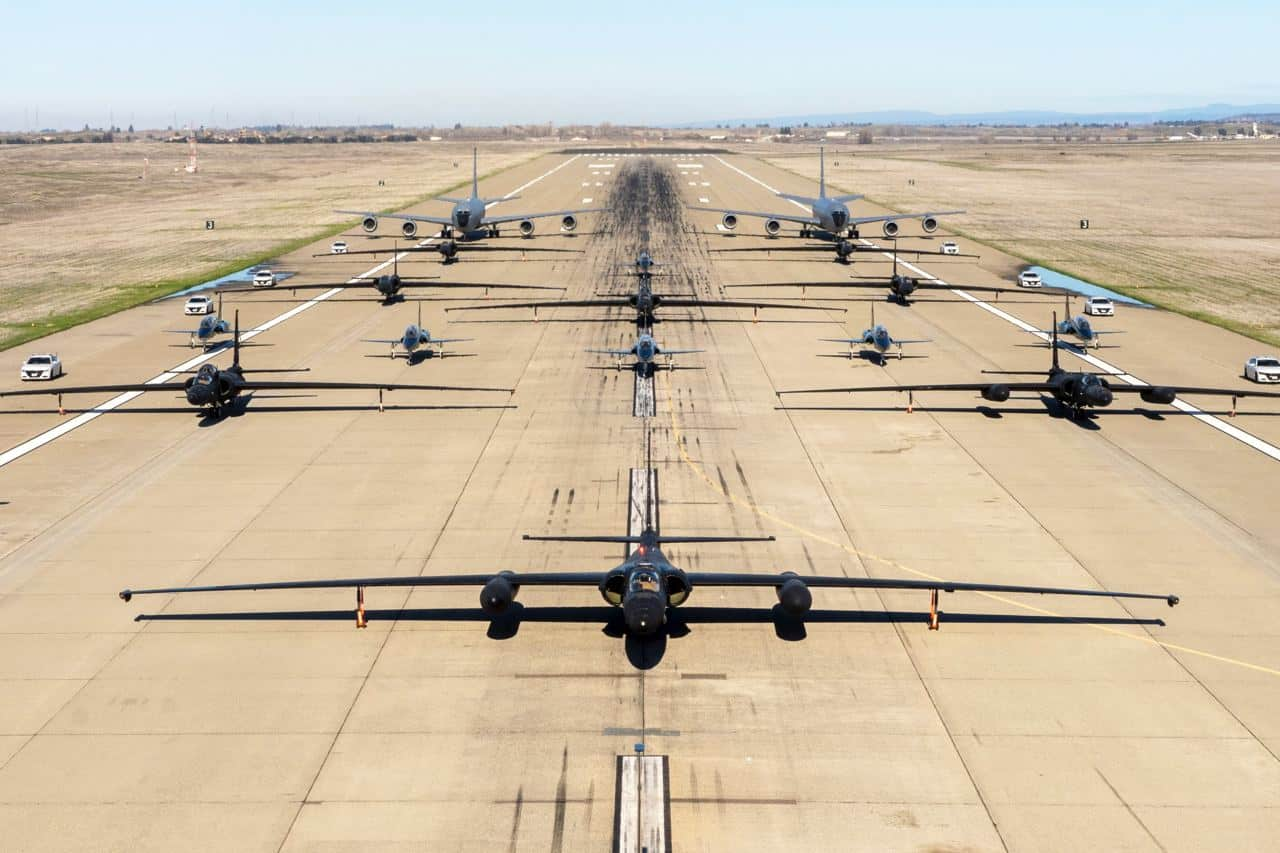 Підрозділи американських ВПС, розташовані на базі Біл (Beale) у Каліфорнії, провели показові навчання з вправою, що називається “слоняча прогулянка”. Під час вправи військові відпрацьовують управління ескадрильєю літаків у тісному шикуванні, коли зліт відбувається з інтервалом у 20-40 секунд.